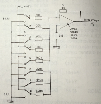 se utiliza una red ponderada de transistores y un amplificador operacional sumador