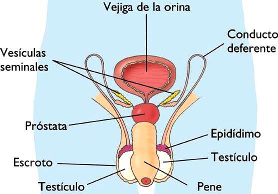 Los conductos deferentes: una serie de tubos que salen de los testículos y llevan los espermatozoides hasta el pene.