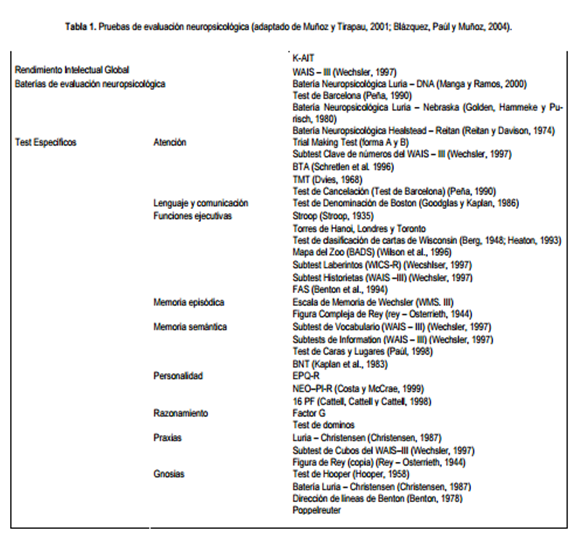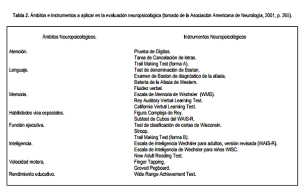 en la evaluación neuropsicológica.