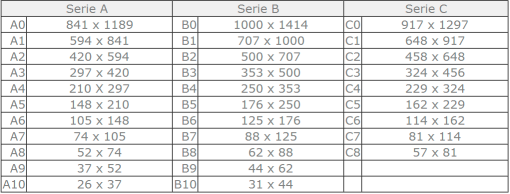 llamado A0 cuyas dimensiones serían 1189 x 841 mm. El resto de formatos de la