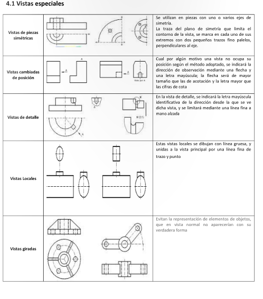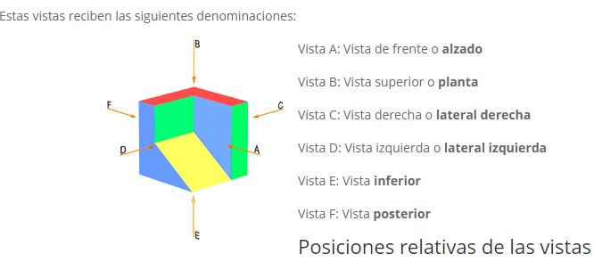 vistas como, las proyecciones ortogonales de un objeto,