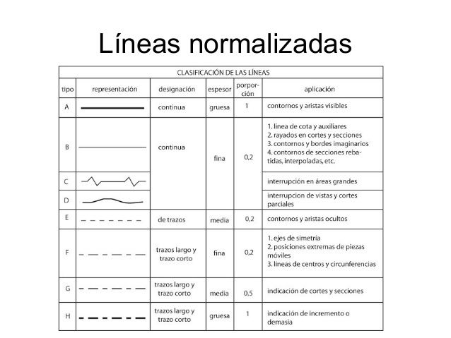 continuas, a trazos, a trazo y punto,etc. Según sus espesores