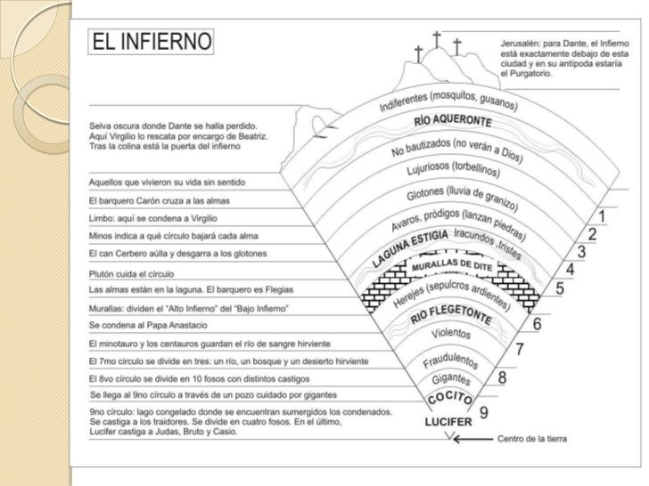 Es cuando dante deciende a los 9 circulos del infierno con virgilio como guia