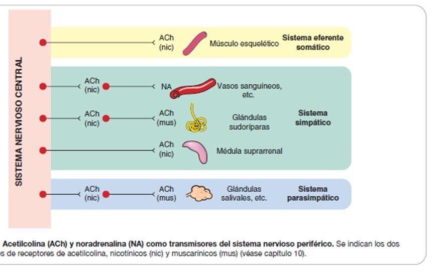 * La excepción son las glándulas sudoríparas que utilizan ACETILCOLINA en la neurona posganglionar a pesar de ser simpáticas