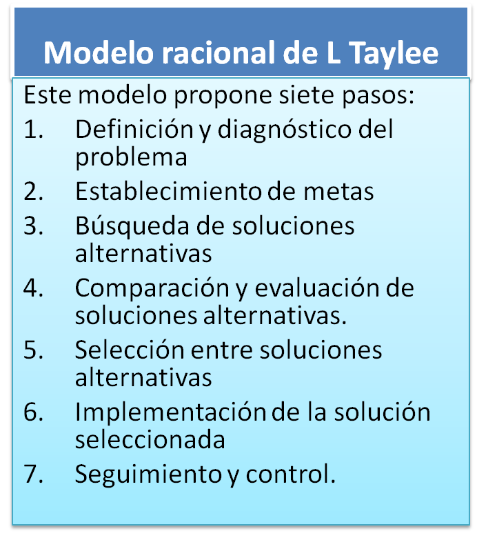 El Modelo Racional Se basa en las siguientes hipótesis: el decisor tiene