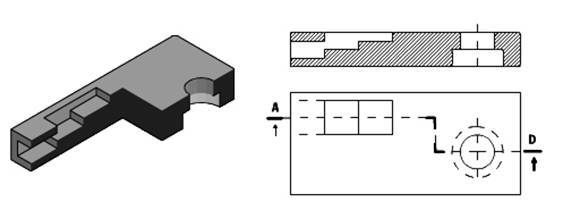 Cortes: Un corte es una representación de la parte de una pieza que fue dividida a través de un plano de corte donde este