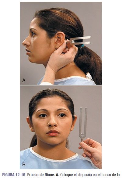 base del diapasón en vibración sobre el área mastoidea y pida al paciente que le indique cuándo ya