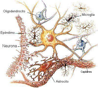 Pequeñas células con numerosas prolongaciones citiplasmaticas a su alrededor