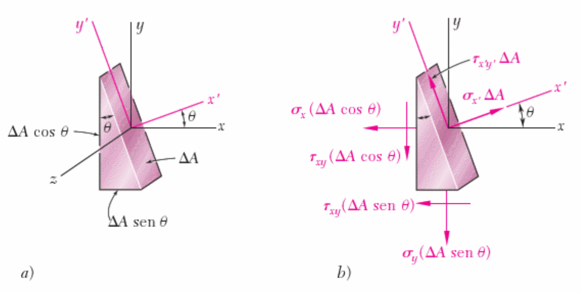 Se realiza mediante un elemento prismático que nos ayuda a analizar con ecuaciones de equilibro las fuerzas que actúan sobre el elemento cúbico girado