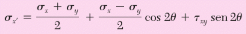 De las ecuaciones que se opbtienen para el esfuerzo normal el x' se le suma al ángulo 90 y se puede obtener el esfuerzo normal en y