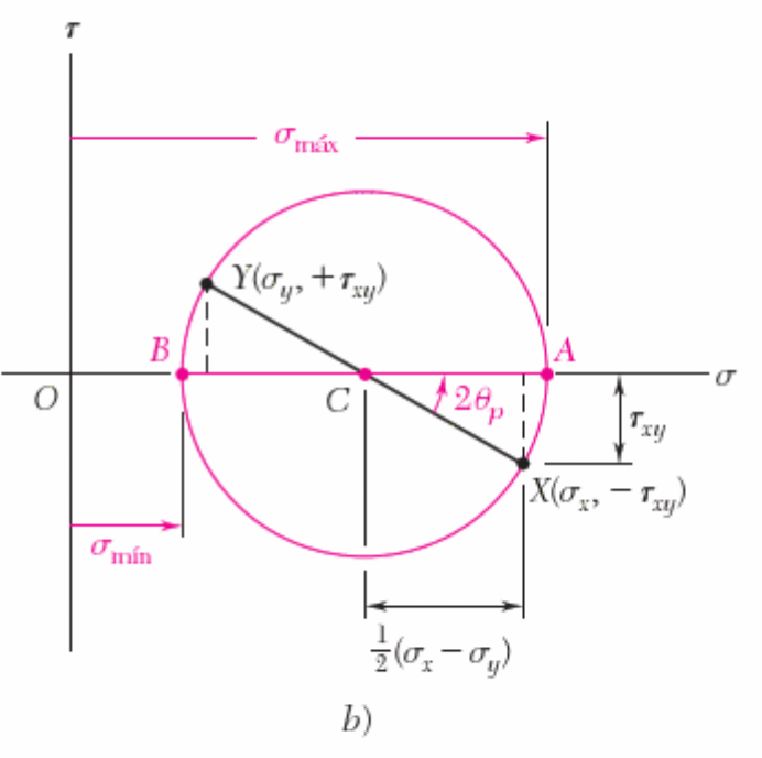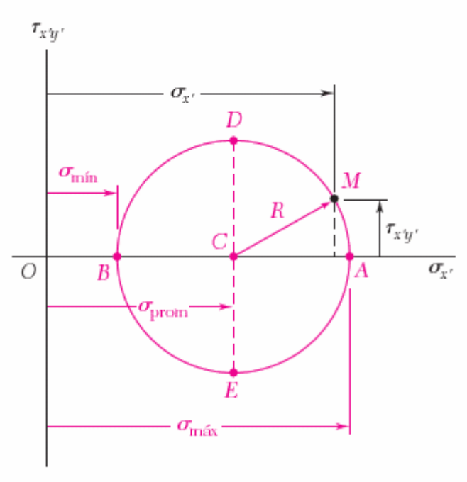 A y B son los puntos máximos y mínimos y tienen valor nulo de esfuerzo cortante Tx'y'