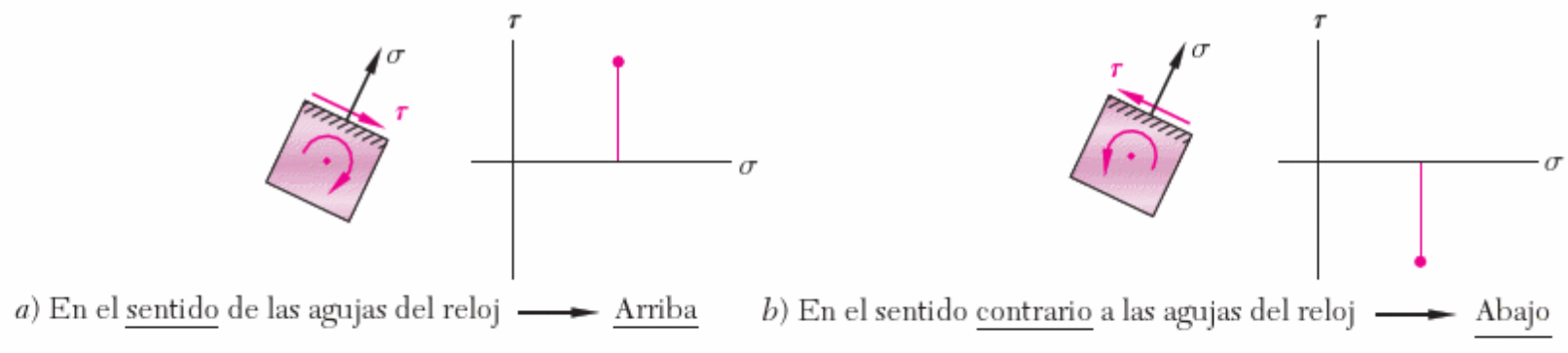 Si esfuerzo x es mayor al y y Ty mayor a 0 la rotación que trae CX a CA es en sentido contrario a las agujas del reloj