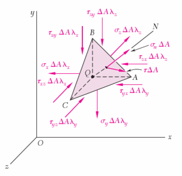 El análisis se limita al esfuerzo normal en un plano arbitrario