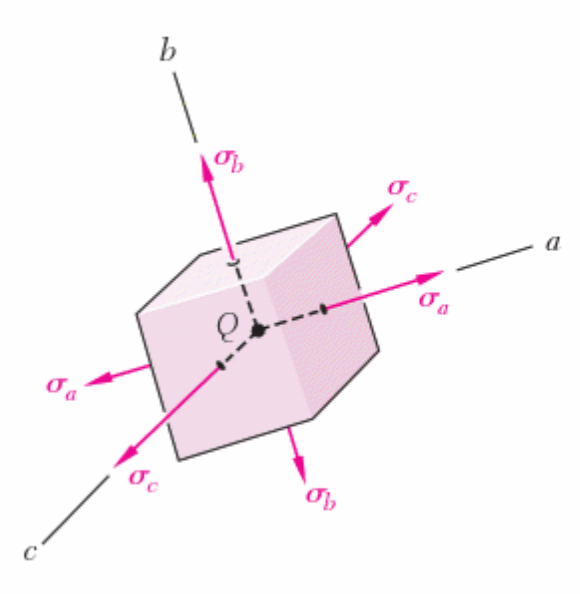 Los ejes a, b, c son los ejes principales de esfuerzo y sus planos son planos principales al igual que los esfuerzos en Q