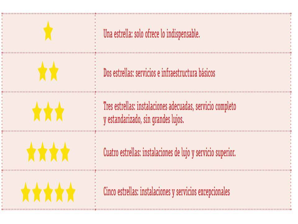 establecimientos de hospedaje y se homologó el número de categorías. Sin embargo, se estipuló que obtener