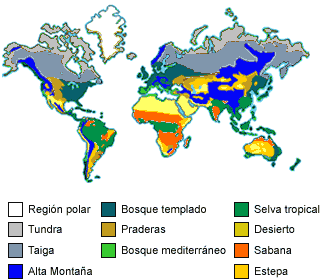 animales y organismos del suelo. Los biomas están