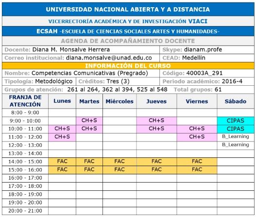 Espacio en donde se ubica la información y horario de atención del tutor, por diferentes medios.