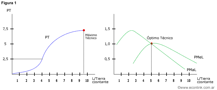 Relación entre cantidad máxima de producción y los factores necesarios
