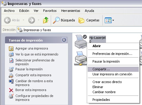 2.- Si deseamos compartir una impresora en red, debemos colocarnos en la carpeta impresoras del