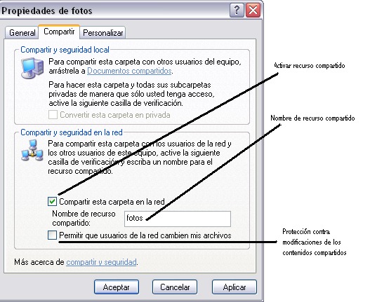 "Opciones de compartición". En la ventana que se abrió, pinché en el cuadro de verificación