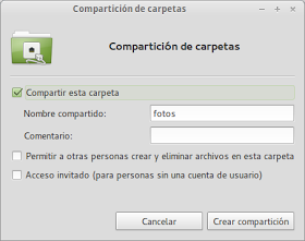 Y luego en el botón "Crear compartición". Aparentemente estaba todo listo, pero, al probar desde la