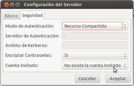Seguridad nos dirigimos a Modo de Autenticación y seleccionamos Recurso Compartido, tal y