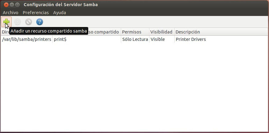 Para añadir nuestro primer recurso compartido tendremos que hacer clic sobre el símbolo “+” .