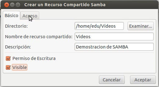 de carpeta y con todo esto ya tendríais que estar compartiendo la carpeta con Samba. Solo tenéis