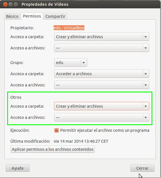 A nivel del sistema también le tendremos que dar permisos de escritura a los otros, ya que el