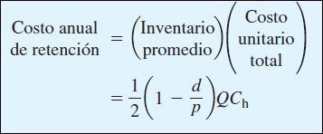 Costo asociado con el mantenimiento de una inversión de inventario,