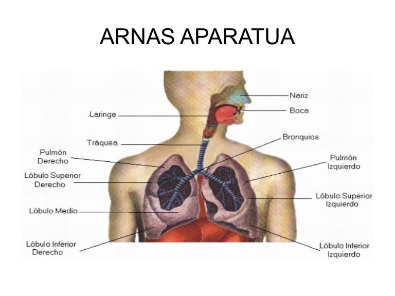 Arnas aparatuari esker oxigenoa ( O2) hartu eta karbono dioxidoa ( CO2) botatzen dugu.