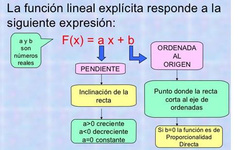 El siguiente mapa conceptual te permite encontrar los elementos mas importantes de la función lineal