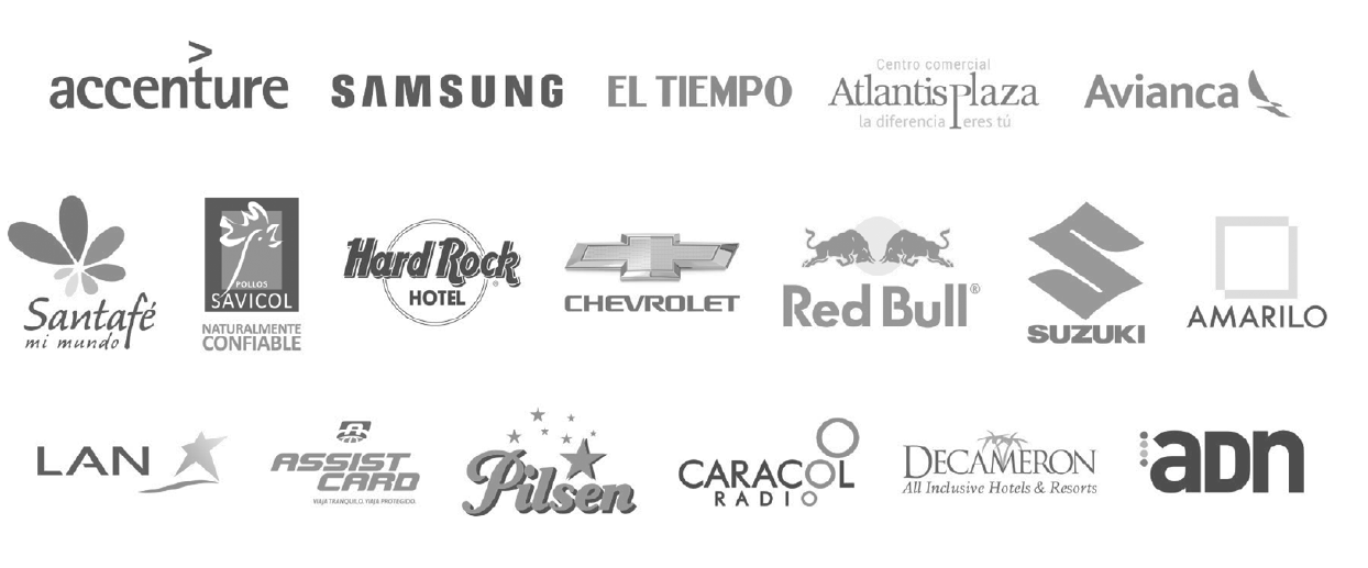 Va en el orden de iz a der: Samsung Chevrolet Red Bull Amarilo Suzuki Pilsen Accenture Avianca LAN El Tiempo