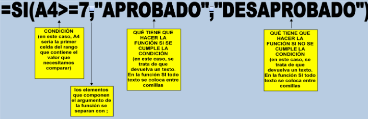 Contiene informacion sobre las funciones: si en excel y cual es su estructura.