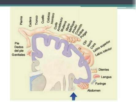representación de las diferentes regiones del cuerpo en el área somatosensitiva de la corteza cereblar.