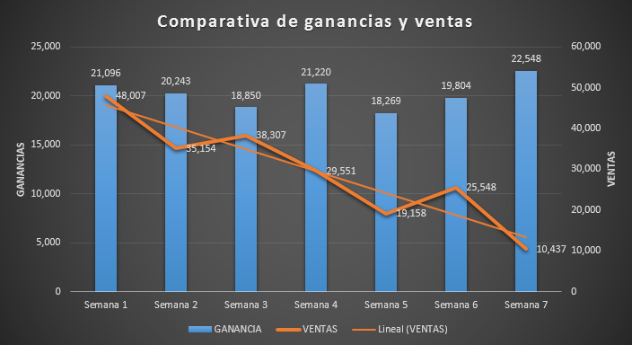 muestran comparaciones entre elementos