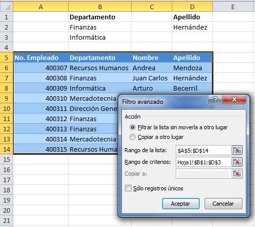 Utilizado para realizar filtros con criterios más complejos. Se diferencia del Autofiltro al tener que