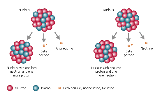 Un neutrón se descompone en un protón y un electrón, y el electrón sale del núcleo