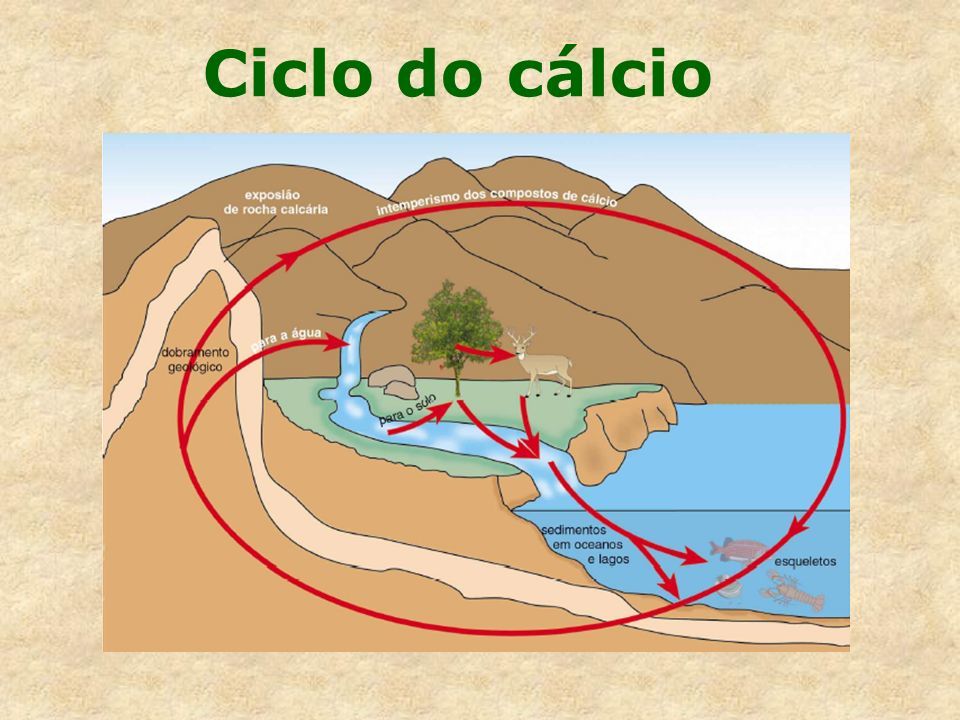 Movimentos da crosta terrestre favorecem o afloramento desses terrenos, tornando o cálcio novamente disponível para o uso pelos seres vivos.