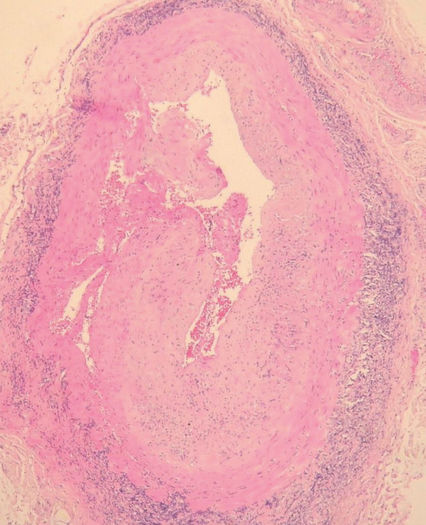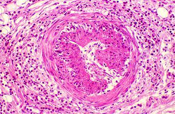 Denso infiltrado mononuclear en los vasos sanguíneos