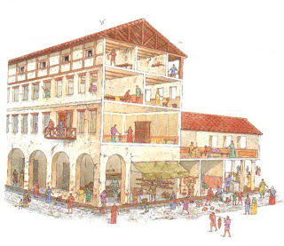 Las clases populares vivían en edificios de varias plantas divididos en minúsculos apartamentos, insulae. Estos