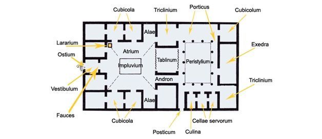 generalmente el plano de la domus urbana y el recinto solía contar con otras instalaciones, como