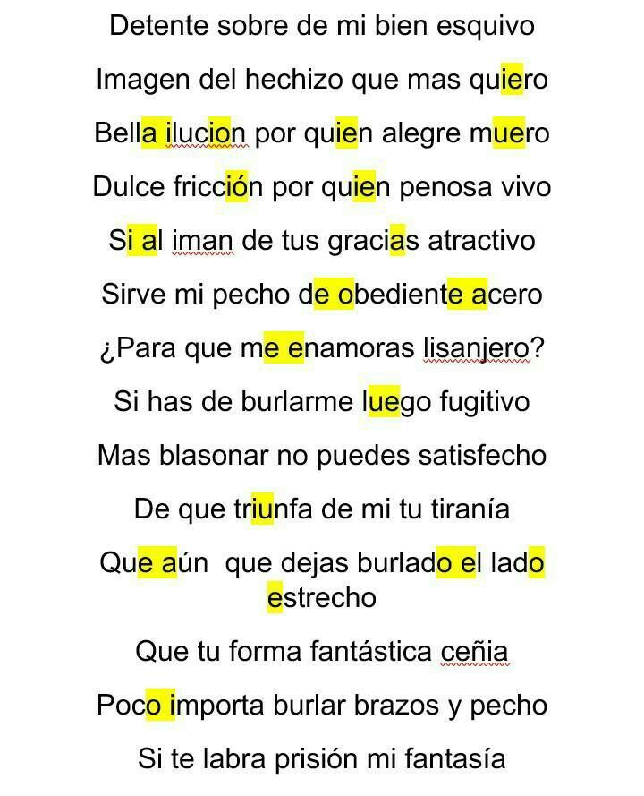 El Soneto es una Composición Poética que consiste en catorce versos endecasílabos distribuidos en dos cuartetos y dos tercetos. Los cuartetos: cada uno de los cuartetos riman, por regla general, el primer verso con el cuarto y el segundo con el tercero (ABBA, ABBA).Los tercetos: pueden ir estas ordenadas de distintas maneras, por ejemplo (CDE, CDE), (CDC, DCD), etc.