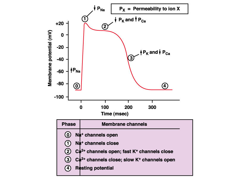 Los canales voltaje-dependientes para el calcio de tipo L se cierran, mientras que los canales lentos de
