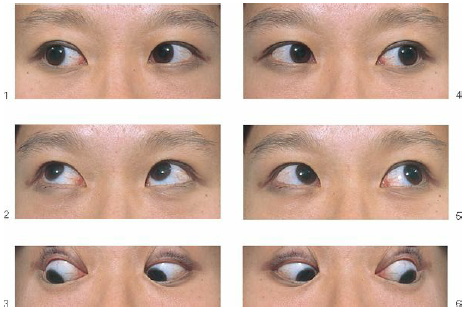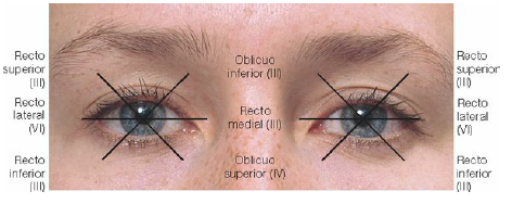 movimiento ocular en distintas direcciones, fijarse si los ejes de los
