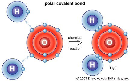 Hydrogen (slightly +) attracted to Oxygen (slightly -) ---> Covalent bonding between them