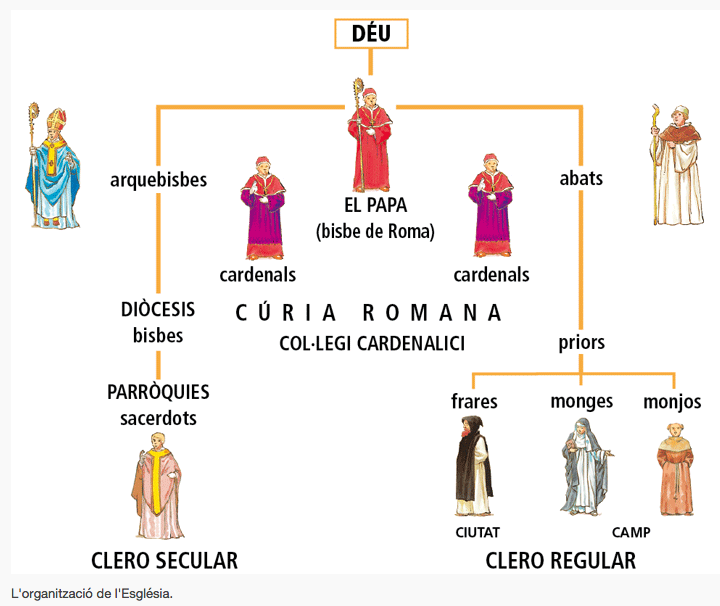 S'organitzava de forma jeràrquica: a dalt de tot el Papa i el col·legi de cardenals. I per sota, dos grans grups...