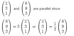 Two vectors u and v are parallel if and only if u = kv where k is a constant.