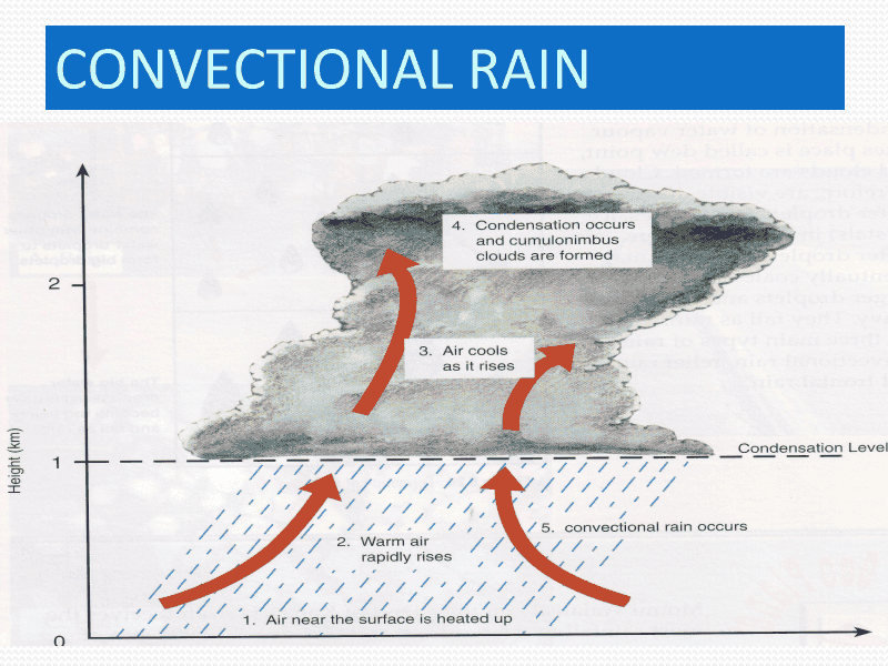 2. Large quantity of water vapour rises rapidly -> condensation -> clouds