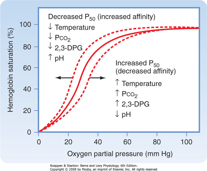 decreased affinity for oxygen